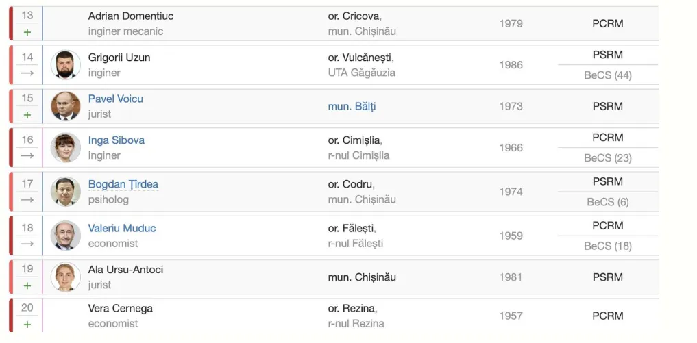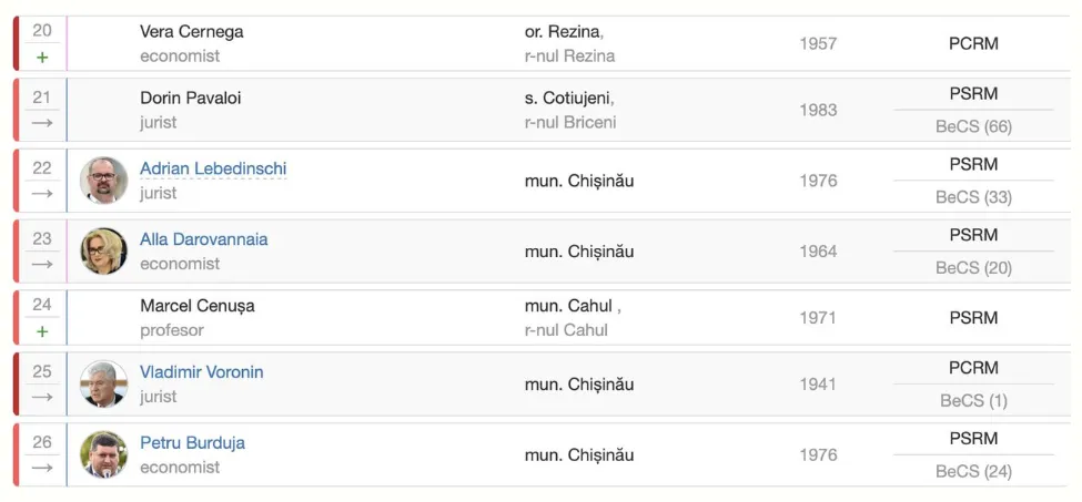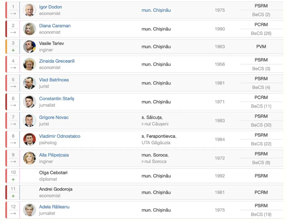 Totodată, printre candidații care ar urma să acceadă în Legislativ se regăsesc și Grigore Novac, Pavel Voicu, Bogdan Țîrdea, Vladimir Voronin și Petru Burduja.